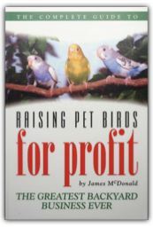 "The Complete Guide To Raising Pet Birds For Profit, The Greatest Backyard Business Ever" is written as a practical guide for the pet lover who wishes to make an income breeding, raising and selling small pet birds. Author James McDonald made his living for 25 years with exotic birds and animals before retiring in 2000 at the age of 50. He raised tens of thousands of birds himself and built a nationwide distributorship that supplied pet shops with parakeets, cockatiels, lovebirds, finches and other small pet birds. Through the years he has helped many people start their own successful backyard business breeding these small pet birds to help supply the pet industry with the millions that are sold annually. Now, for the first time ever he has put his proven methods of success in the form of a book. The book explains how to make an excellent income, either part-time or full-time breeding the most popular species of pet birds. Many breeders using these methods make from $500 to $2000 monthly on a part-time basis while full timers make much more. You will learn how you can live anywhere and ship your birds to the nationwide market. The book is actually 6 books in one. It completely covers both cage and colony breeding methods of parakeets, cockatiels, lovebirds and finches, as well as marketing and shipping. Additionally, three chapters completely cover how to become a wholesale distributor of pet birds, which can be a very lucrative business. Although the book was written with the pet lover in mind that wishes to make an income breeding birds, there is a tremendous amount of information in the book that the hobbyist will find useful as well. Many management tips and pointers can be used by the beginner as well as the experienced person to increase yearly production, thus increasing profits. As a well known animal lover, author James McDonald sold approximately one million exotic birds before his retirement and he reminds the readers of the moral obligations and responsibilities of animal ownership and encourages the reader to always accept those responsibilities by providing humane and adequate care for their birds at all times. The book is not written in some far out technical jargon or academic terminology, but in an easy to understand style with plain and simple, down to earth language by someone who has actually "been there and done that." It is a must have book if you enjoy breeding birds and would like to make a profit while doing something that you truly enjoy.